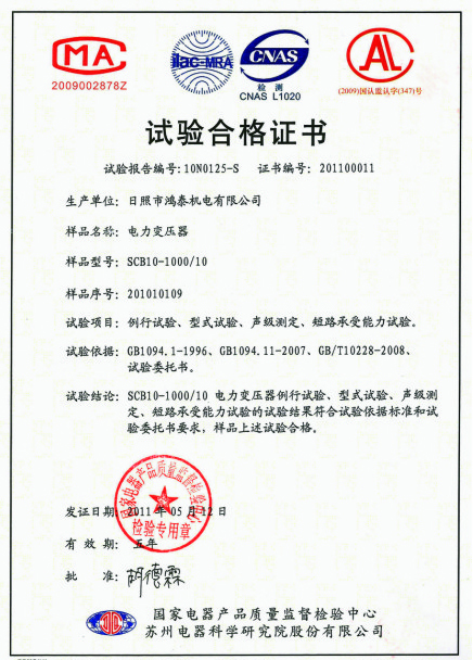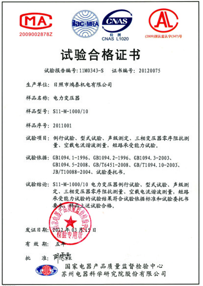 油變?cè)囼?yàn)合格證書(shū)