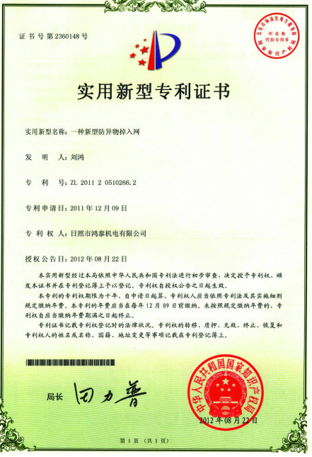 實(shí)用新型專(zhuān)利證書(shū)